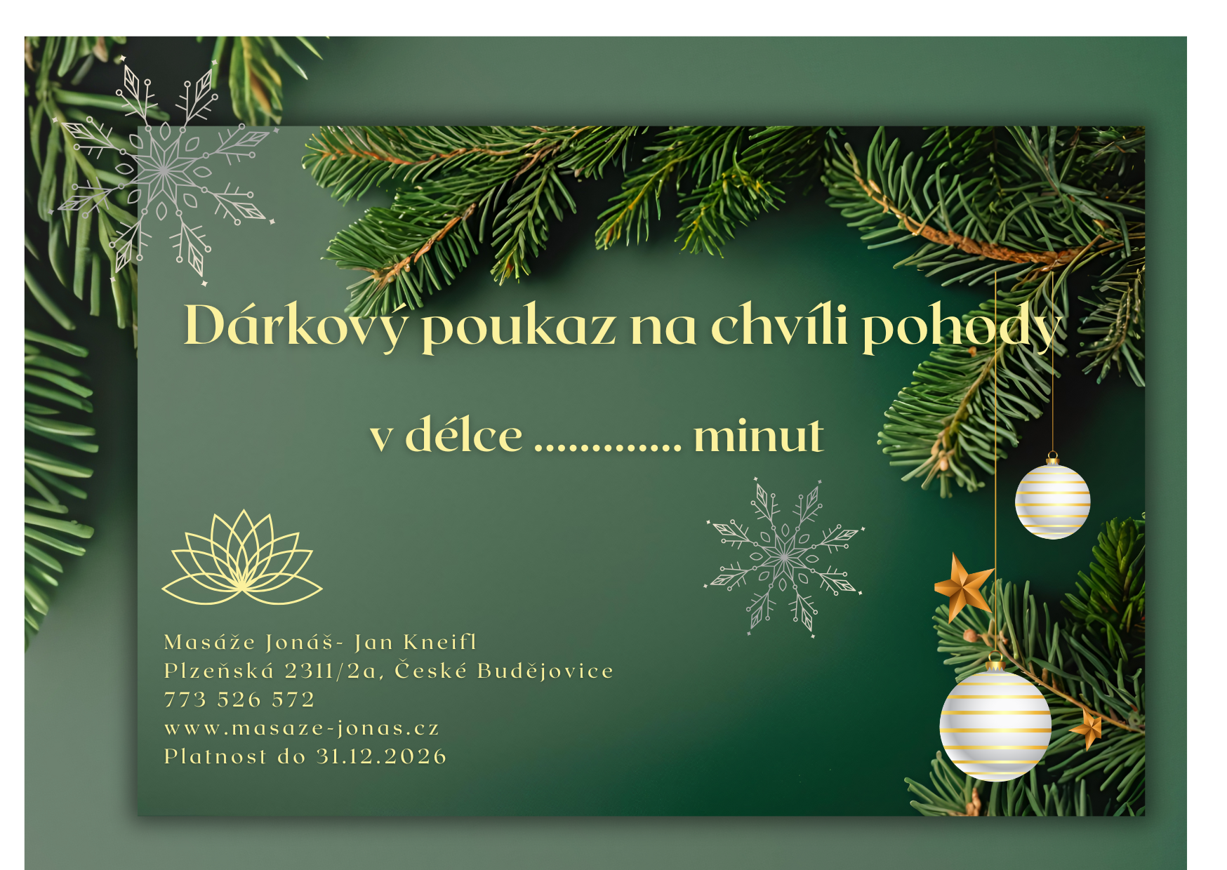 Dárkový poukaz na masáž je dar, který přináší klid, uvolnění a péči – přesně to, co v dnešní uspěchané době tolik chybí.